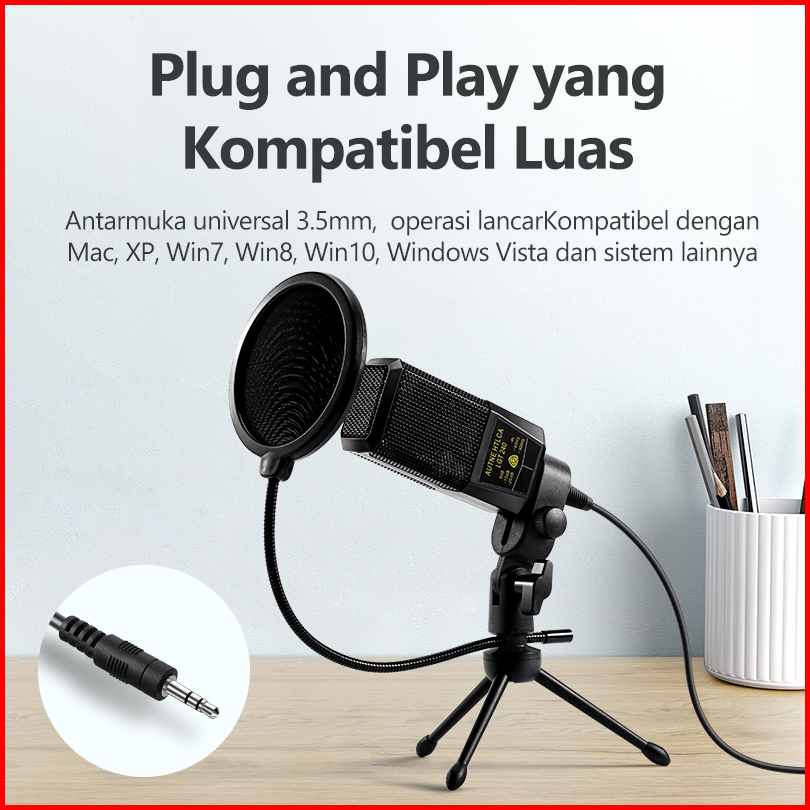 Hot Aston Microphone Konten Kreator At-us19 Black Mic Condenser With Tripod Stand Pop Filter Asli