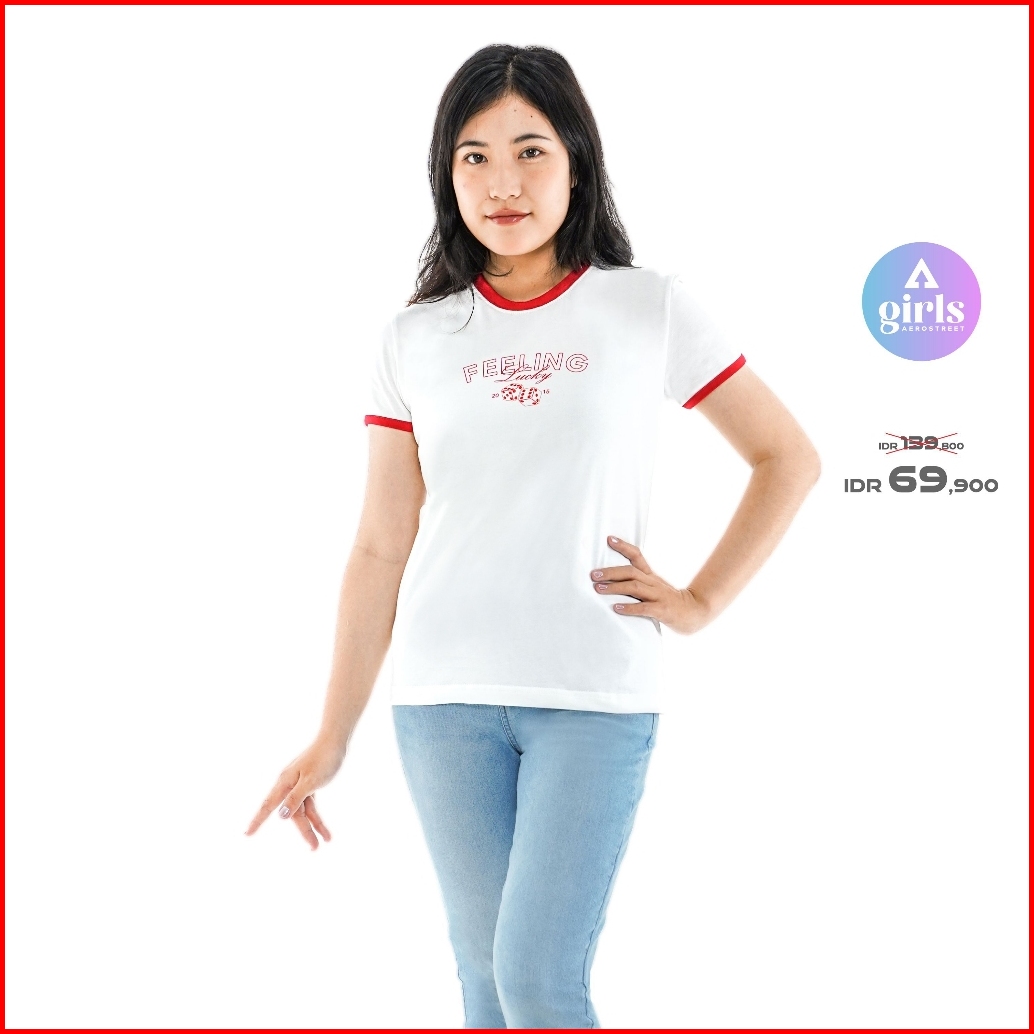 Aerostreet T Shirt Feeling Lucky Off White Merah T Shirt Abaaa