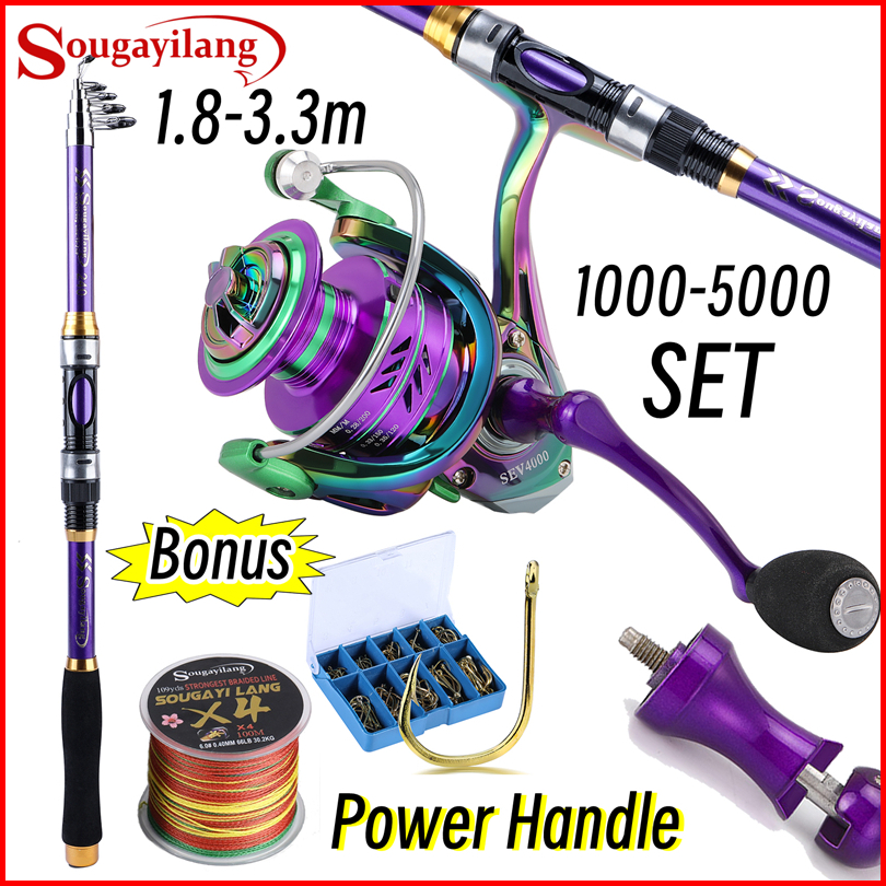 Sougayilang Joran Pancing Set 1.8-3.3m Pancingan 1000-6000 Reel Pancingan Set Lengkap Joran Set