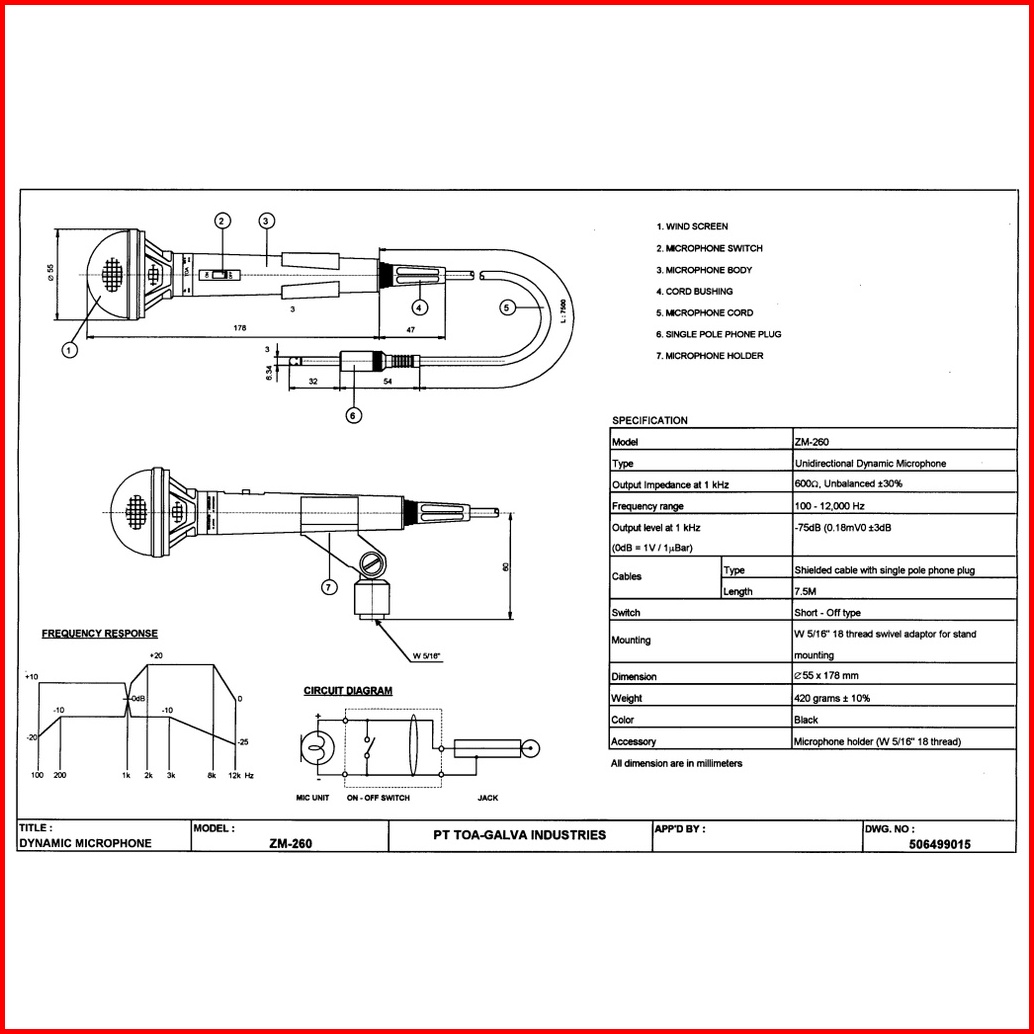 Microphone Mic Toa Zm260 Profesional Dinamic Mik Zm-260 Zm 260 Mikrophone Kabel Vocal Vokal Dynamic Mik Mikrophone Toa O