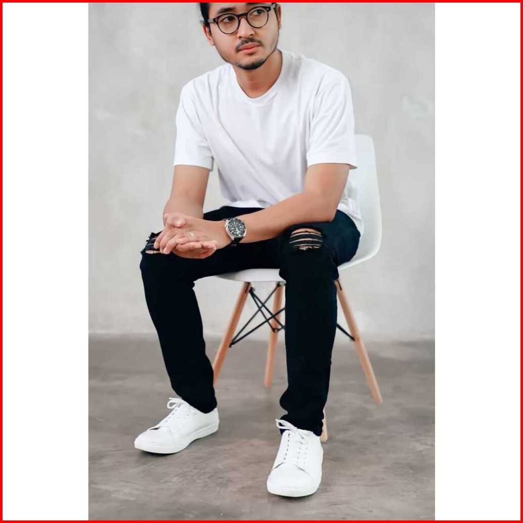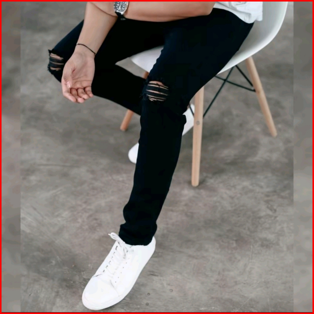 Celana Jeans Panjang Pria Sobek Lutut Slimfit Skynni Pensil Hitam Ripped Denim Stretch Melar