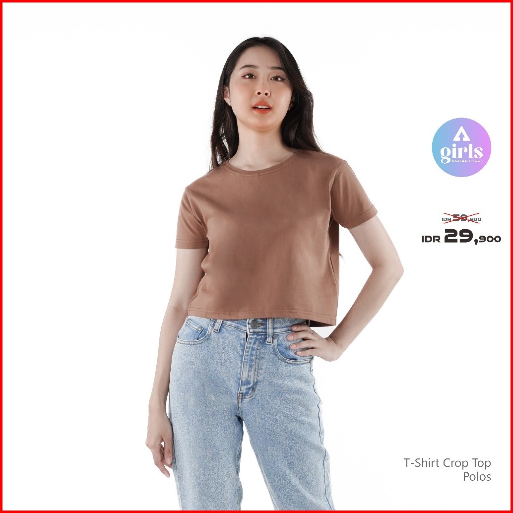 Aerostreet T Shirt Reguler Crop Top Polos Gelap Woman Kac01