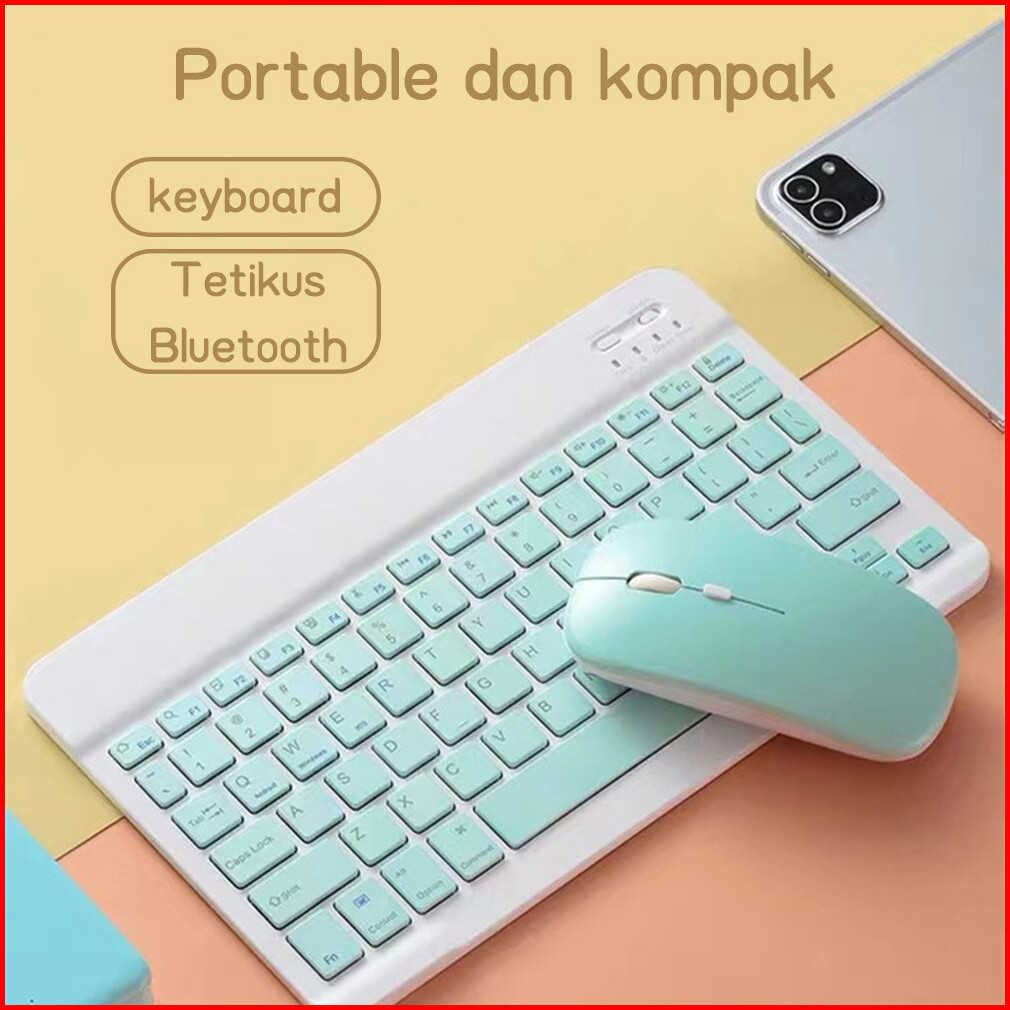 Keyboard Bluetooth Cocok Untuk Ponsel Tablet Ipad Huawei Set Keyboard Dan Mouse Nirkabel Pengisi Daya Senyap Ultra-tipis