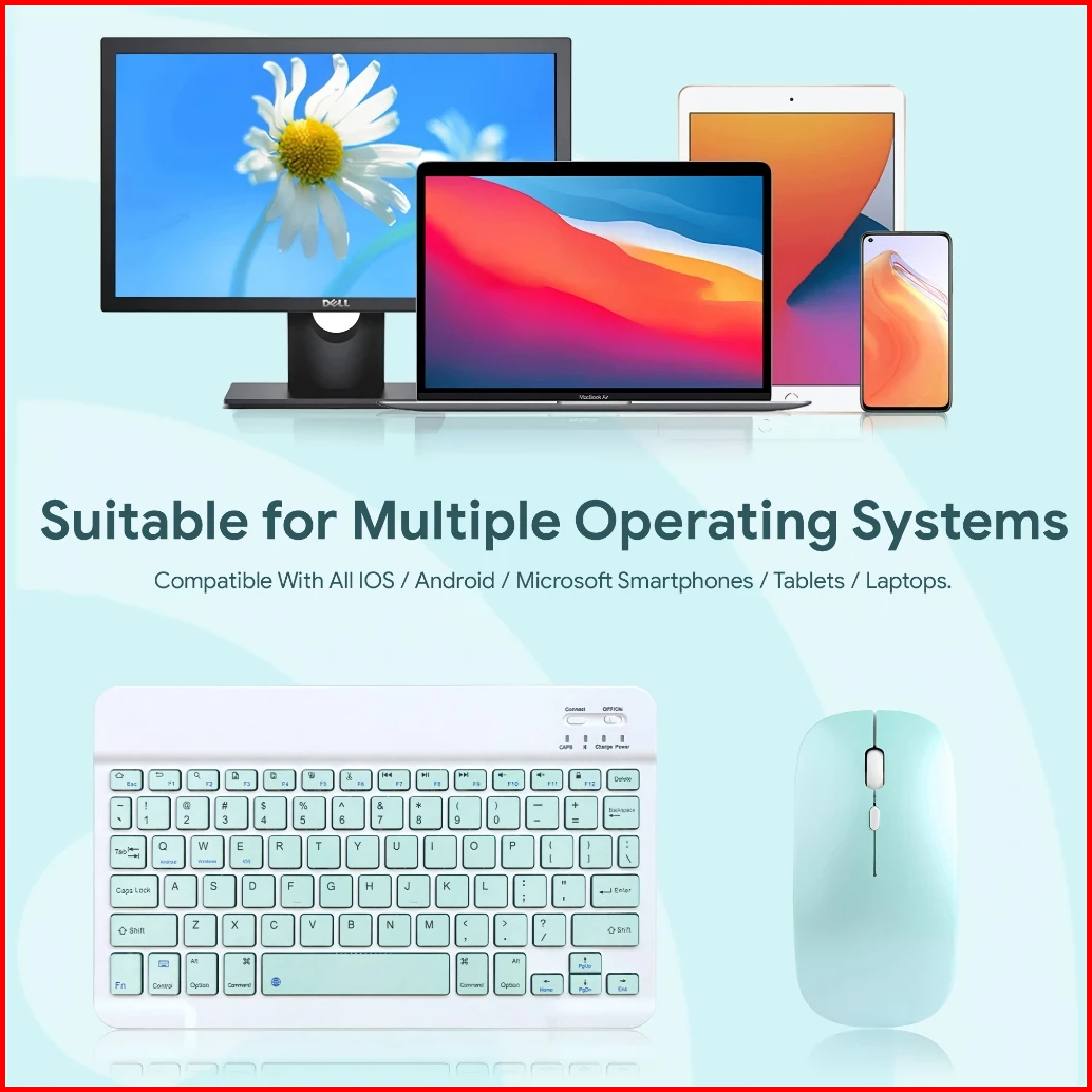 8 Inch Wireless Bluetooth Keyboard Mouse Portable Combo Usb Office Silent Click For Ipad Tablet Laptop Nirkabel Bluetoot