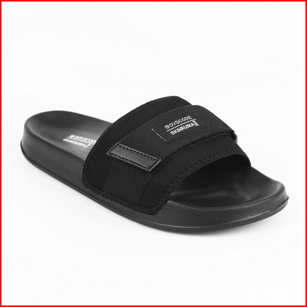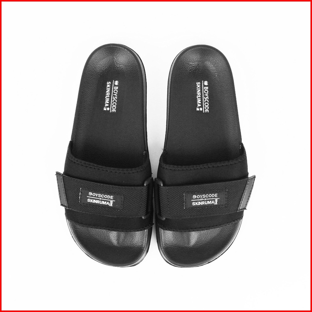 Boyscode Sendal Selop Karet Strap Distro Pria Wanita Kenshin Hitam Fullblack