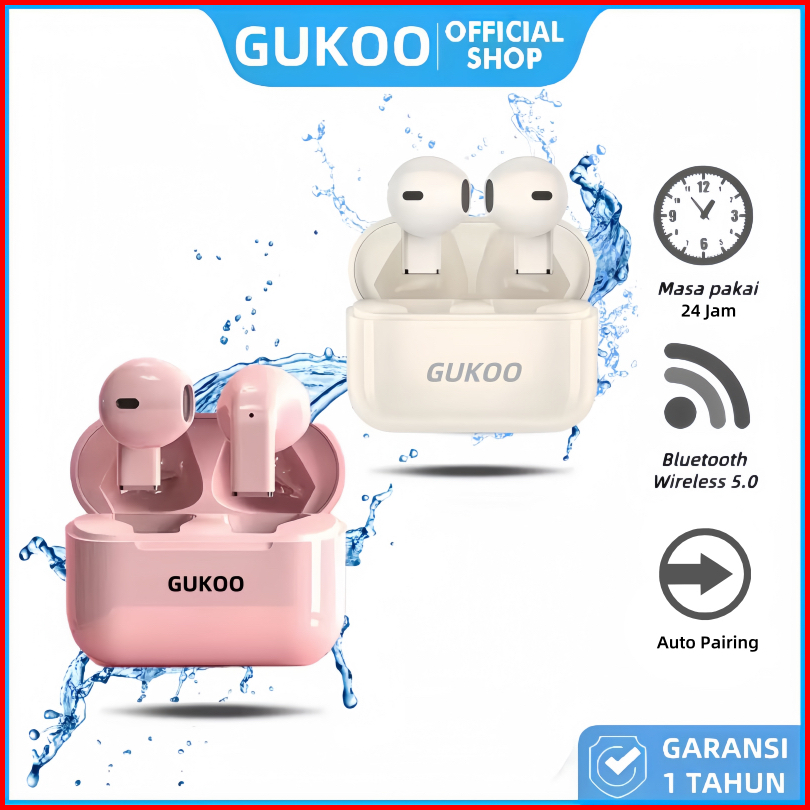 Gukoo Headset Tws Bluetooth 5.3 - Earbuds Nirkabel Hd Baterai 24 Jam Desain Nyaman Tahan Air Ipx5
