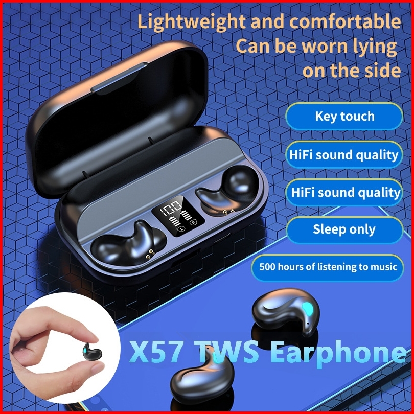 Tws X57 Headphone Bluetooth 5.3 Headphone Tidur In-ear Layar Led Stereo Hifi Kualitas Tinggi