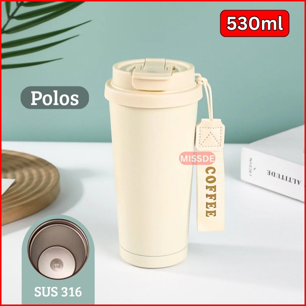 Tumbler Mug 2in1 Stainless Steel 530ml Tahan Panas Dingin Gelas Kopi Lucky Polos
