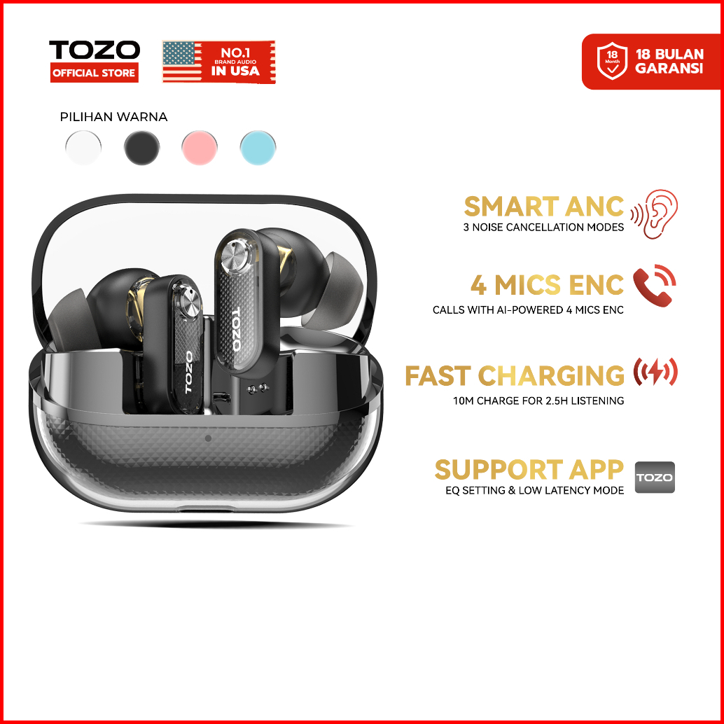 New Arrival Tozo Aerosound3 Macaron Smart 6 Mics Hybrid Anc And 4 Mics Enc Ai Clear Calls Bass Bluetooth 5.4 Low Latency