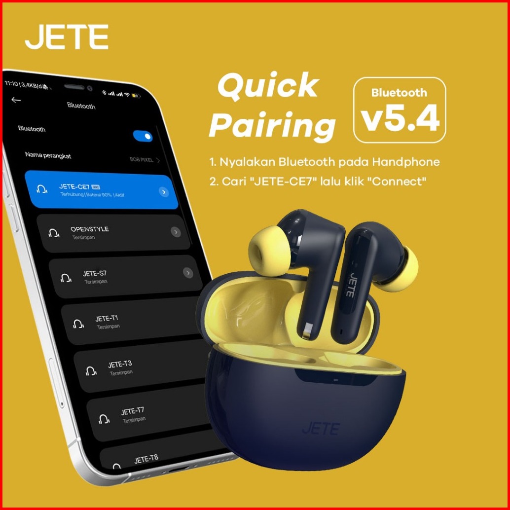 Tws Earphone Bluetooth Jete Ce7 Bt 5.4 24h Playtime Low Latency 50m S- Garansi 2 Tahun