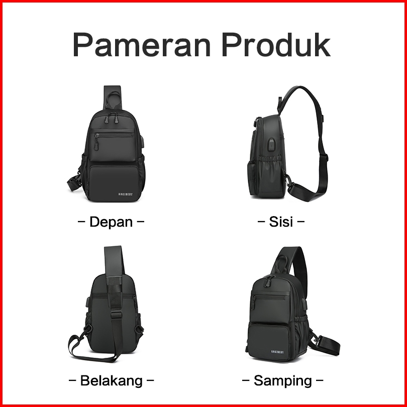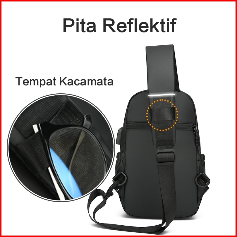 Freeknight Tas Selempang Pria Anti Air Usb Charger Trendy Anti Air Slingbag Cowok Casual Ts750