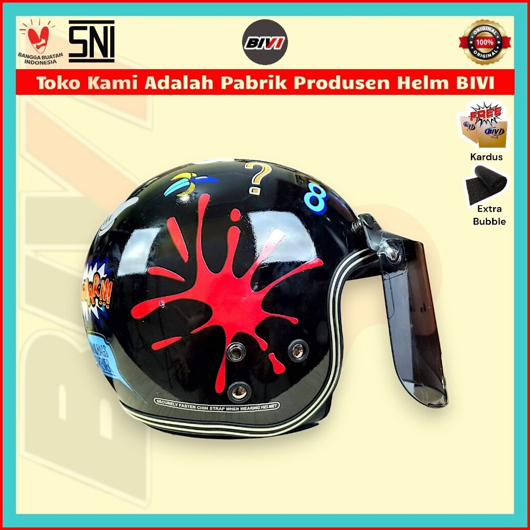 Helm Bogo - Bg Bivi Motif Pelangi Sni Retro Half Face Kaca Dewasa Pria Wanita