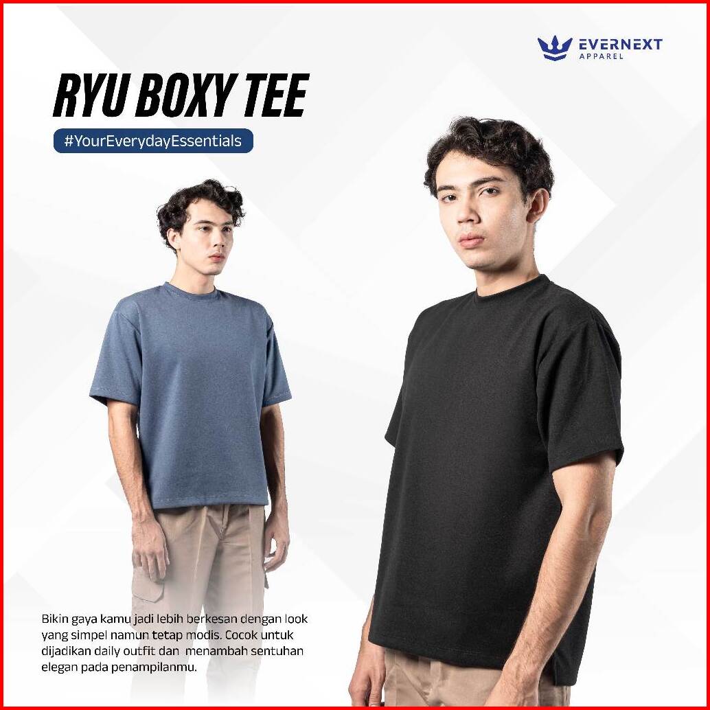 Evernext - Kaos Boxy Tee Pria Kaos Polos Pria Kaos Ryu T-shirt Kaos Pria Dewasa Navy Oversize