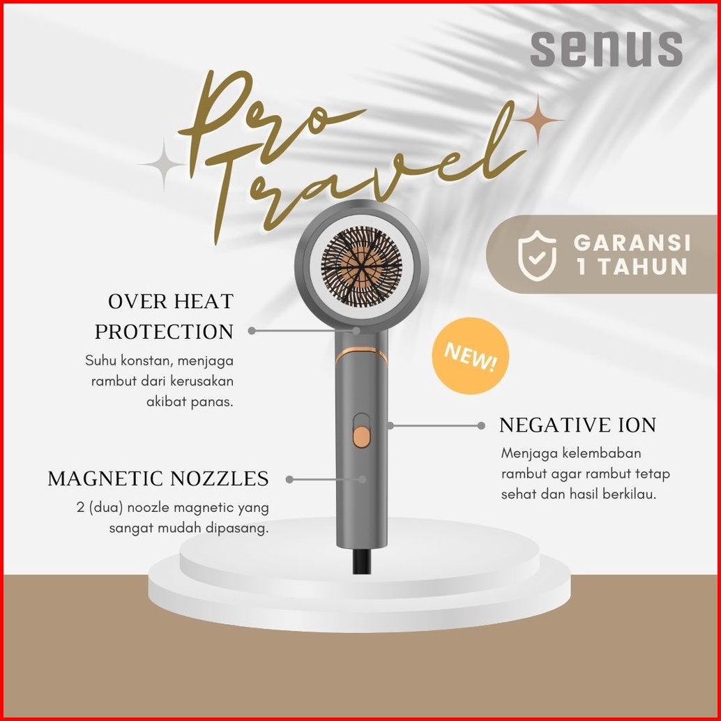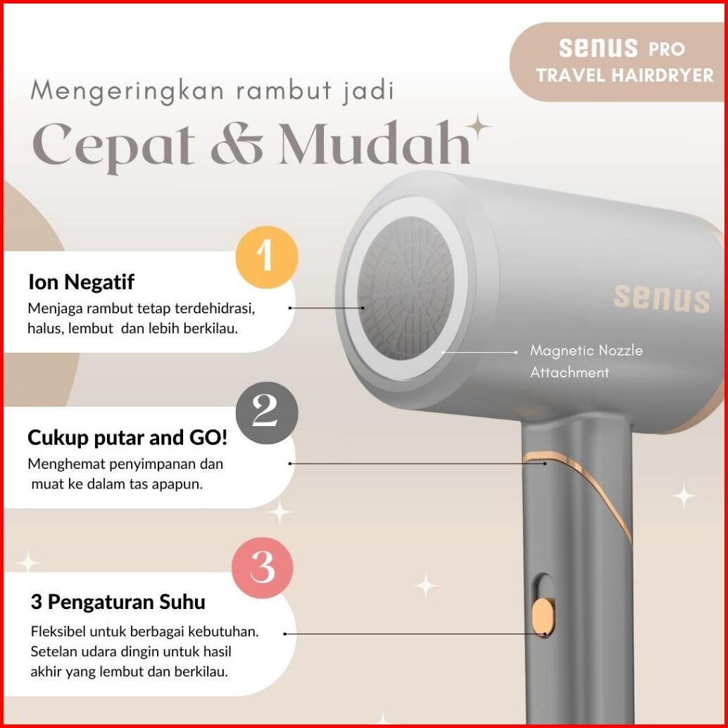 Senus Pro Travel Hair Dryer - Pengering Rambut Lipat 1600 W