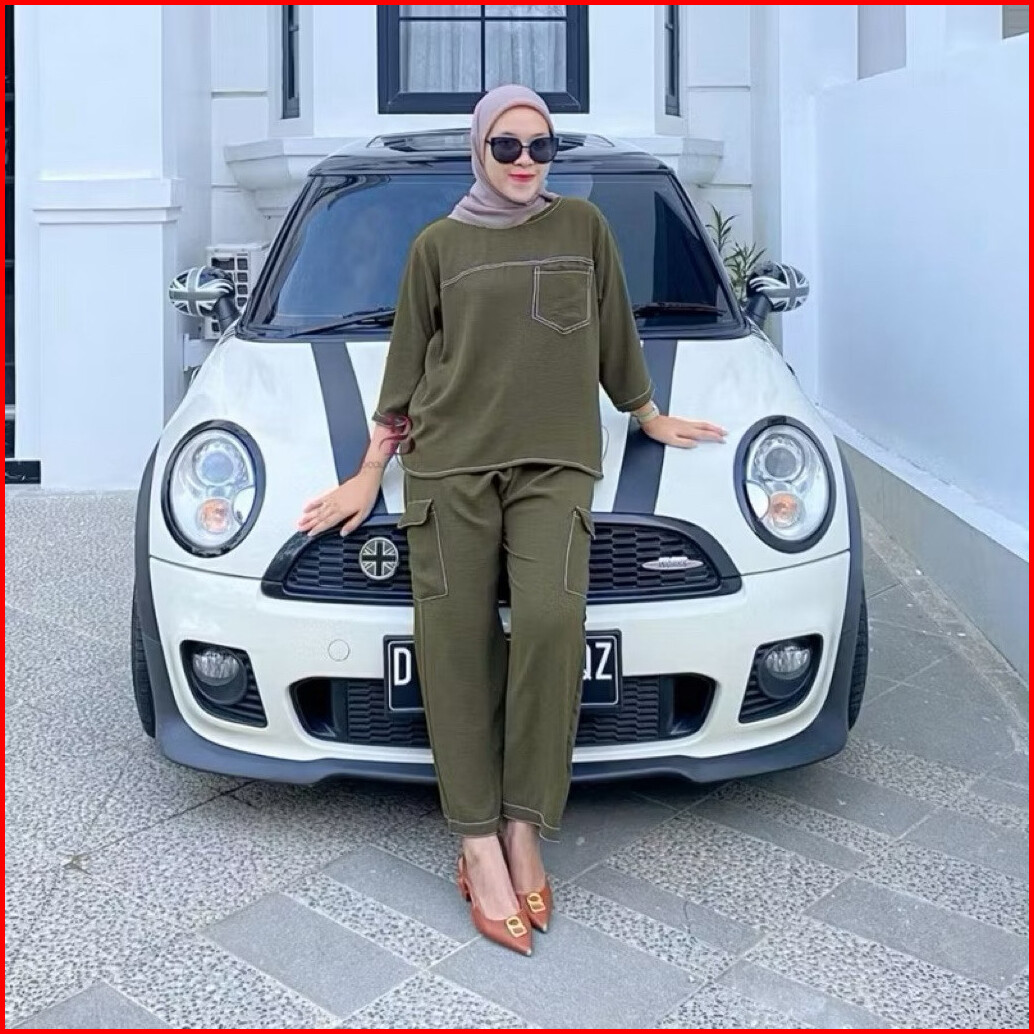Geneaby - Tasya One Set Wanita Setelan Cargo Bahan Crinkle Airflow Size Xl Ld 110