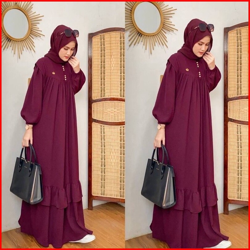 Geneaby - Kalla Dress Gamis Wanita Muslimah Size Xl Xxl Bahan Crinkle Airflow Premium