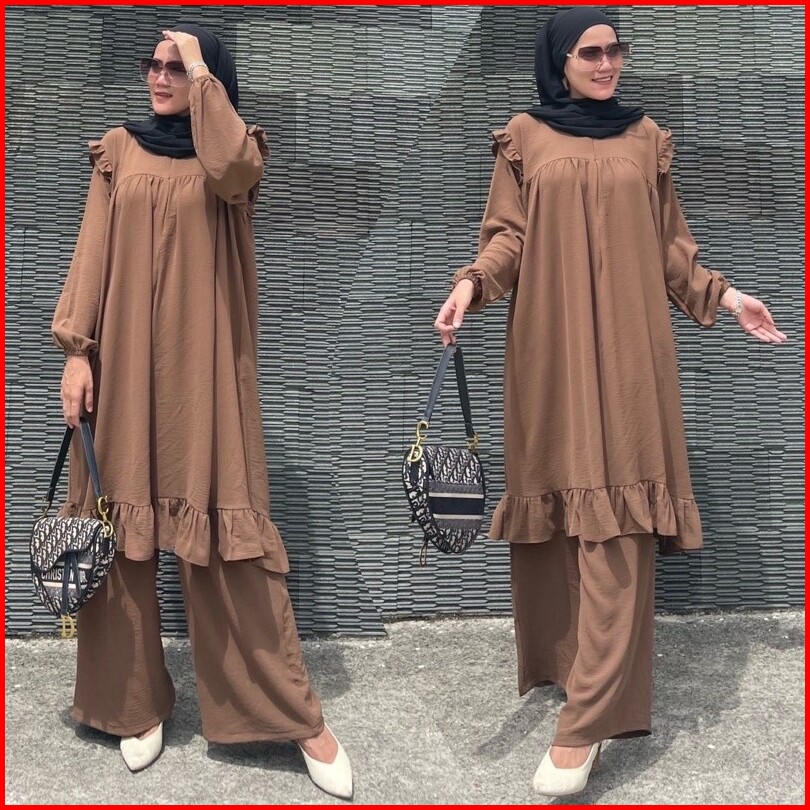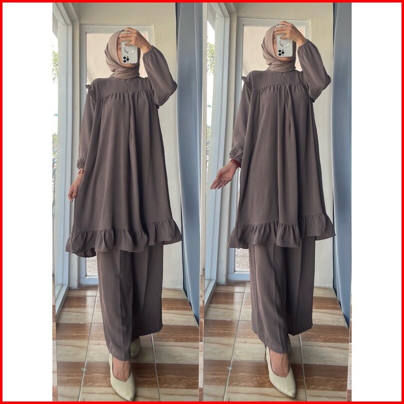 Geneaby - Velisa Set Tunik Wanita Size Xl Xxl Bahan Crinkle Airflow Premium