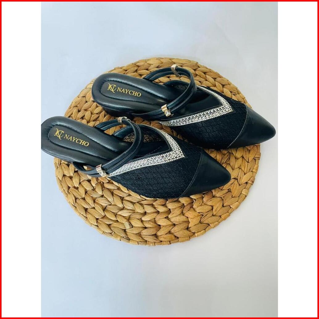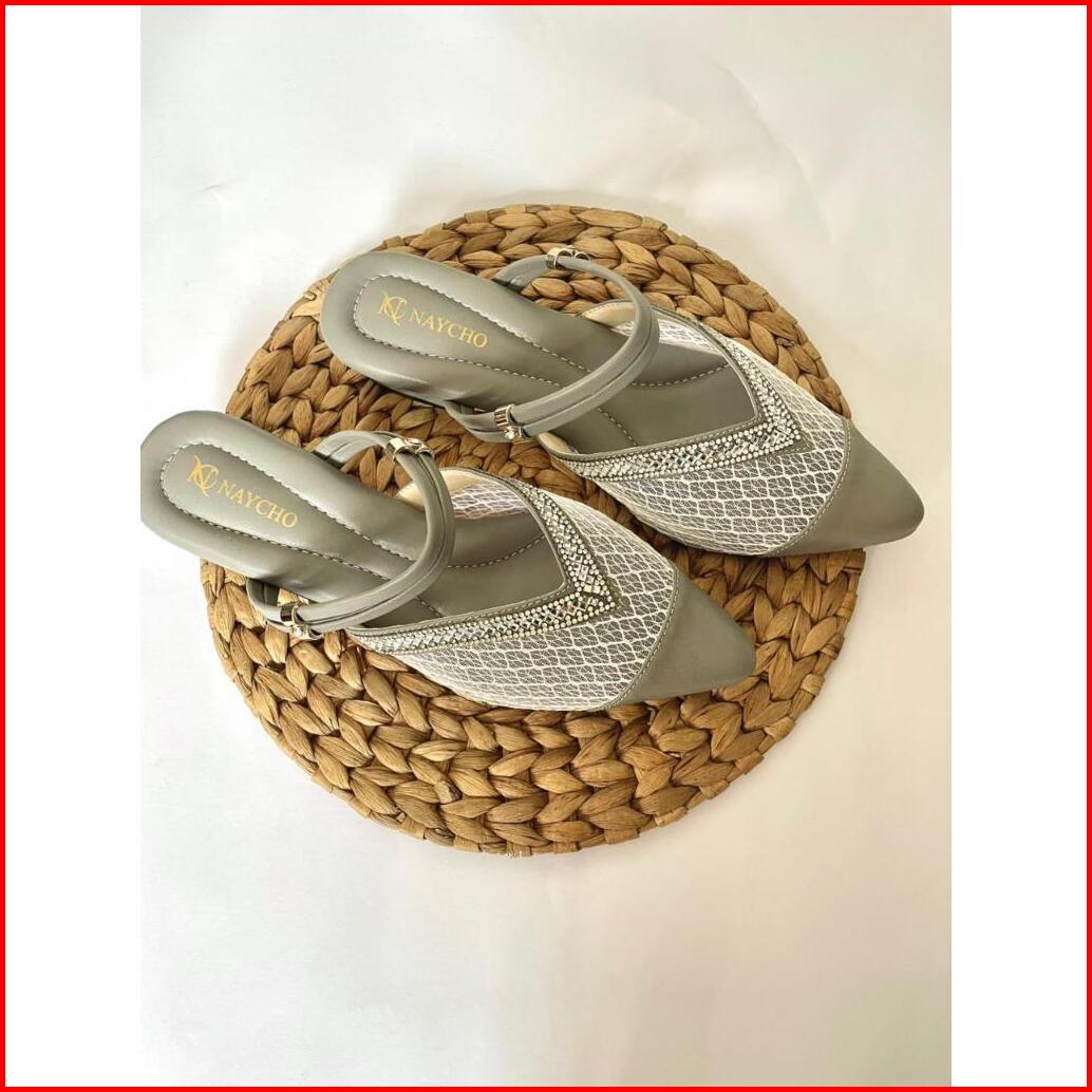 Sandal Heels Wanita Pesta Mules Import Pengantin Kondangan Brukat Hak Kaca 3 Cm Rosegold