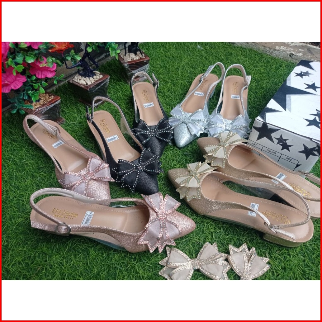 Sendal Sepatu Wanita Pesta Model Tali Belakang Aksesoris Pita Cantik R2