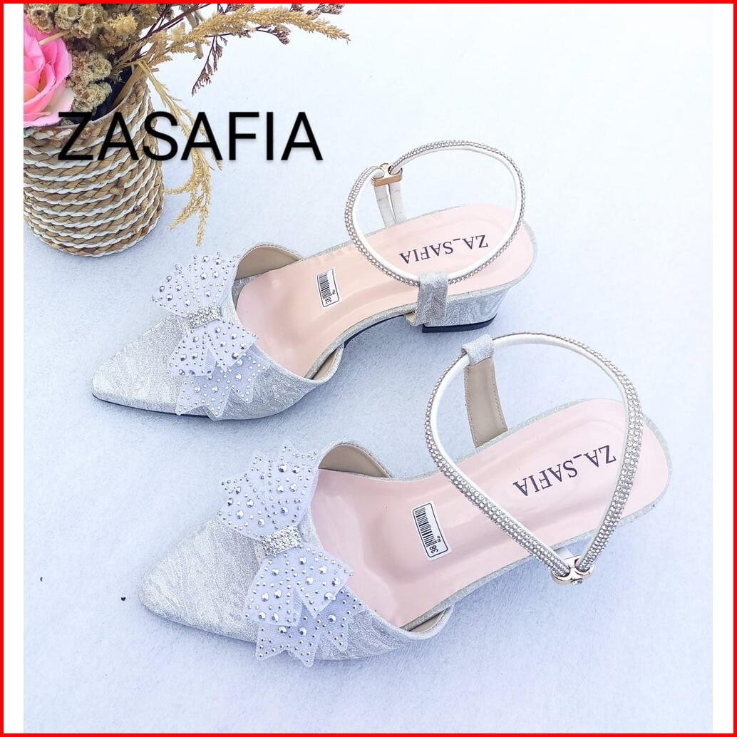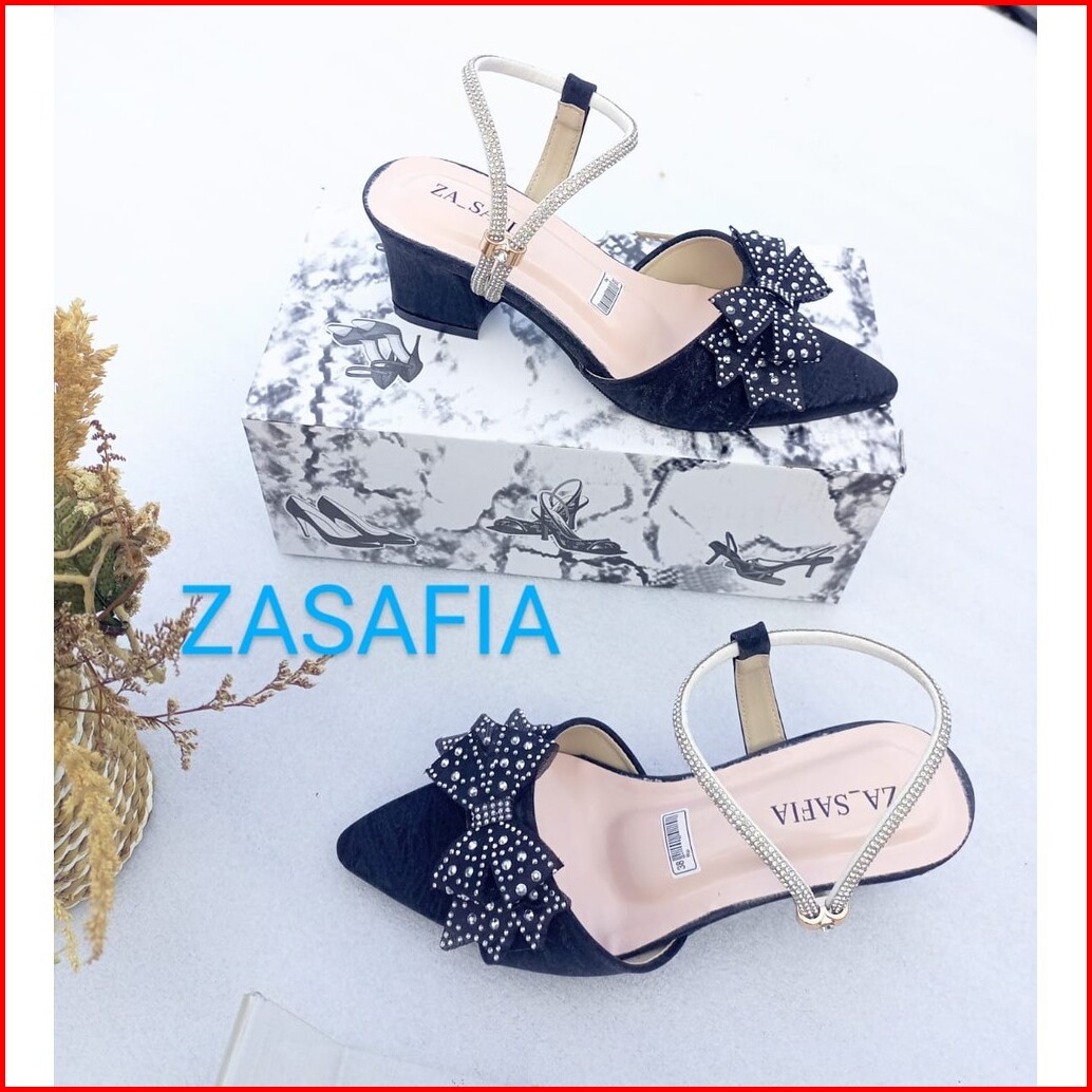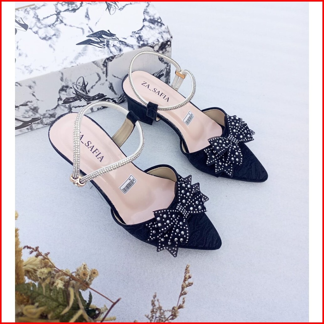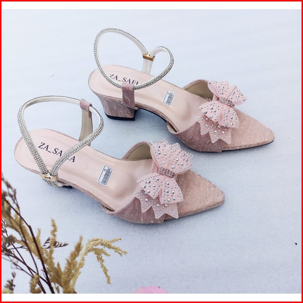 Abzr20 Hn002 Heels Wanita Elegan Pita Berlian Hak 5 Cm Tali Hati Angkle Formal Pesta
