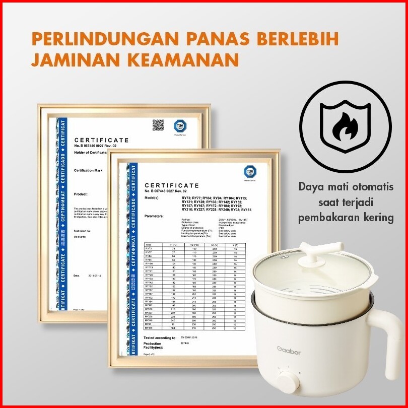Gaabor Panci Listrik Serbaguna Electric Cooker Anti Lengket Kapasitas 1.5l Kukusan Steamer Gr-n15a
