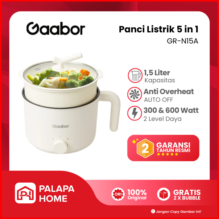 Gaabor Panci Listrik 1.5l Electric Slow Cooker Anti Lengket Penghangat Kuah Makanan Kukusan Gr-n15a