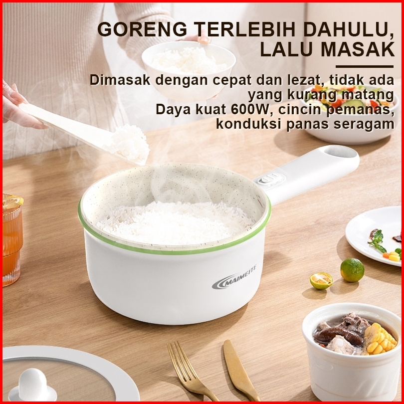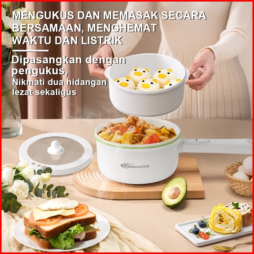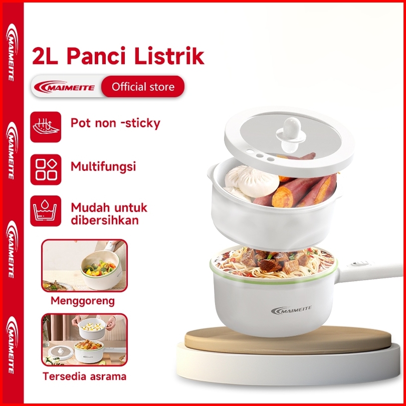 Maimeite Panci Listrik 2l Serbaguna Panci Penggorengan Keramik Elektrik Free Steamer Asrama