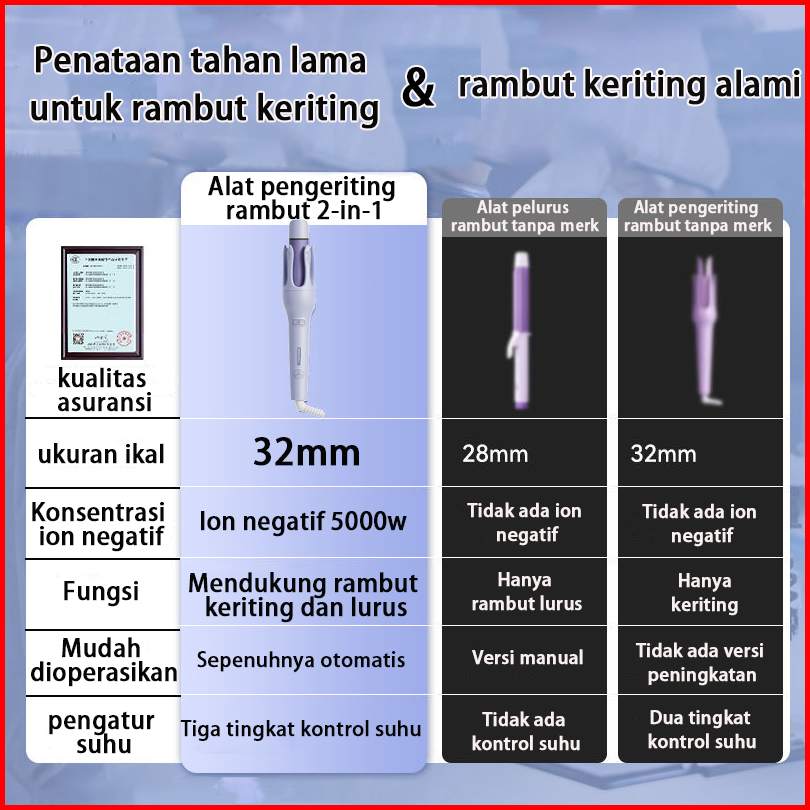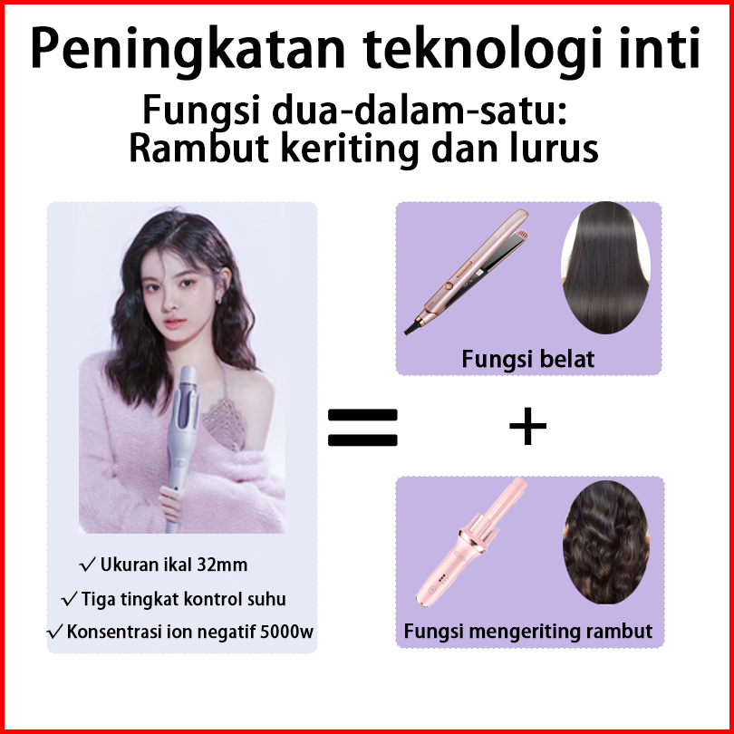 Pribinruis 2in1 Catokan Curly Otomatis Ceramics 32mm Catokan Keriting Rambut Otomatis Lon Negatif Catokan Rambut Curly R