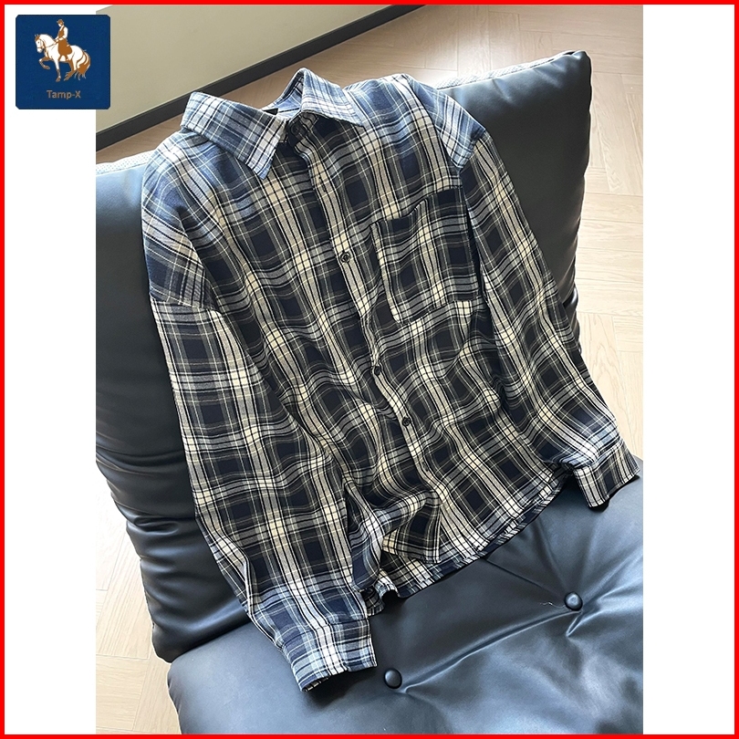 Tamp X Kemeja Kotak-kotak Lengan Panjang Tipis