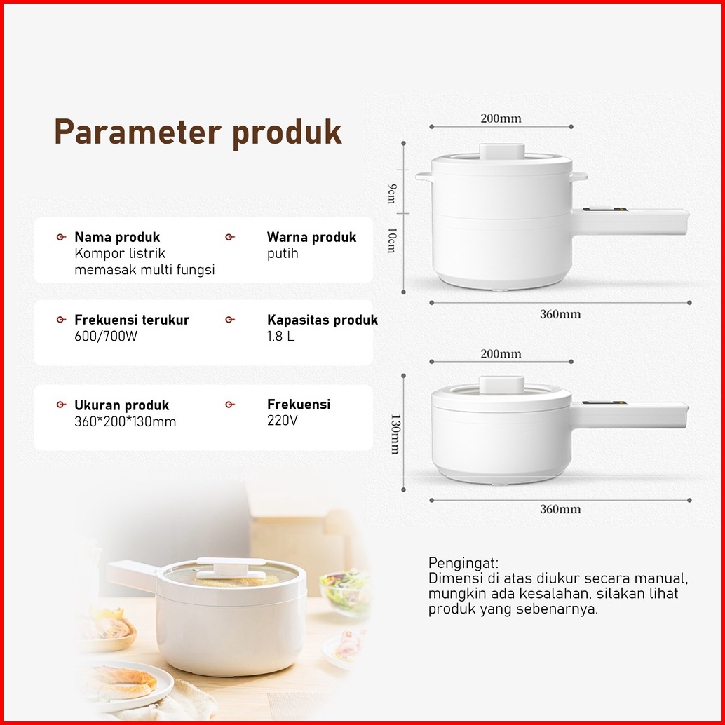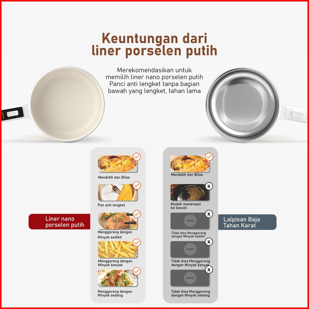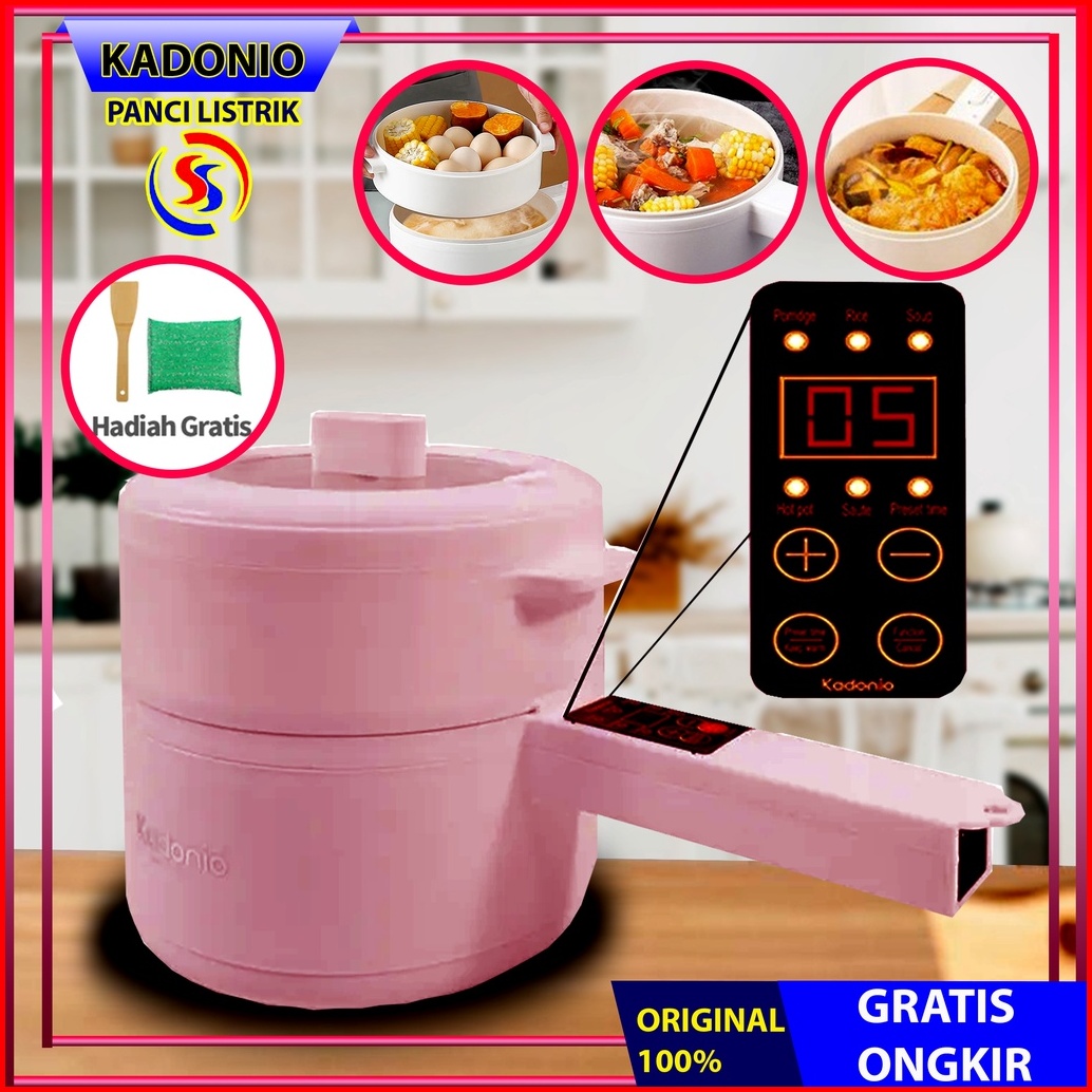 Kadonio Bravhome Panci Listrik Multifungsi Anti Lengket Anti Gores Liner Nano Porselen Putih Penggorengan Masak Bubur Me