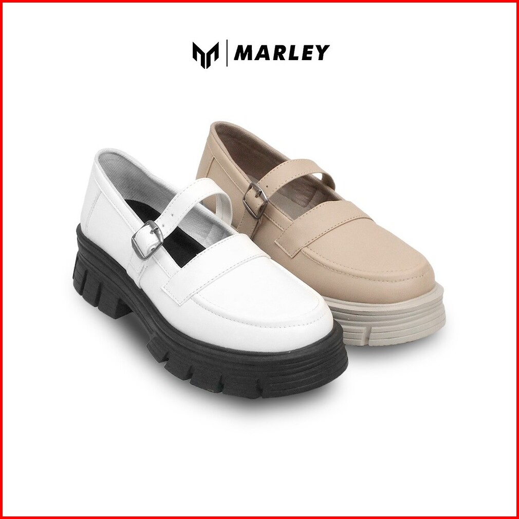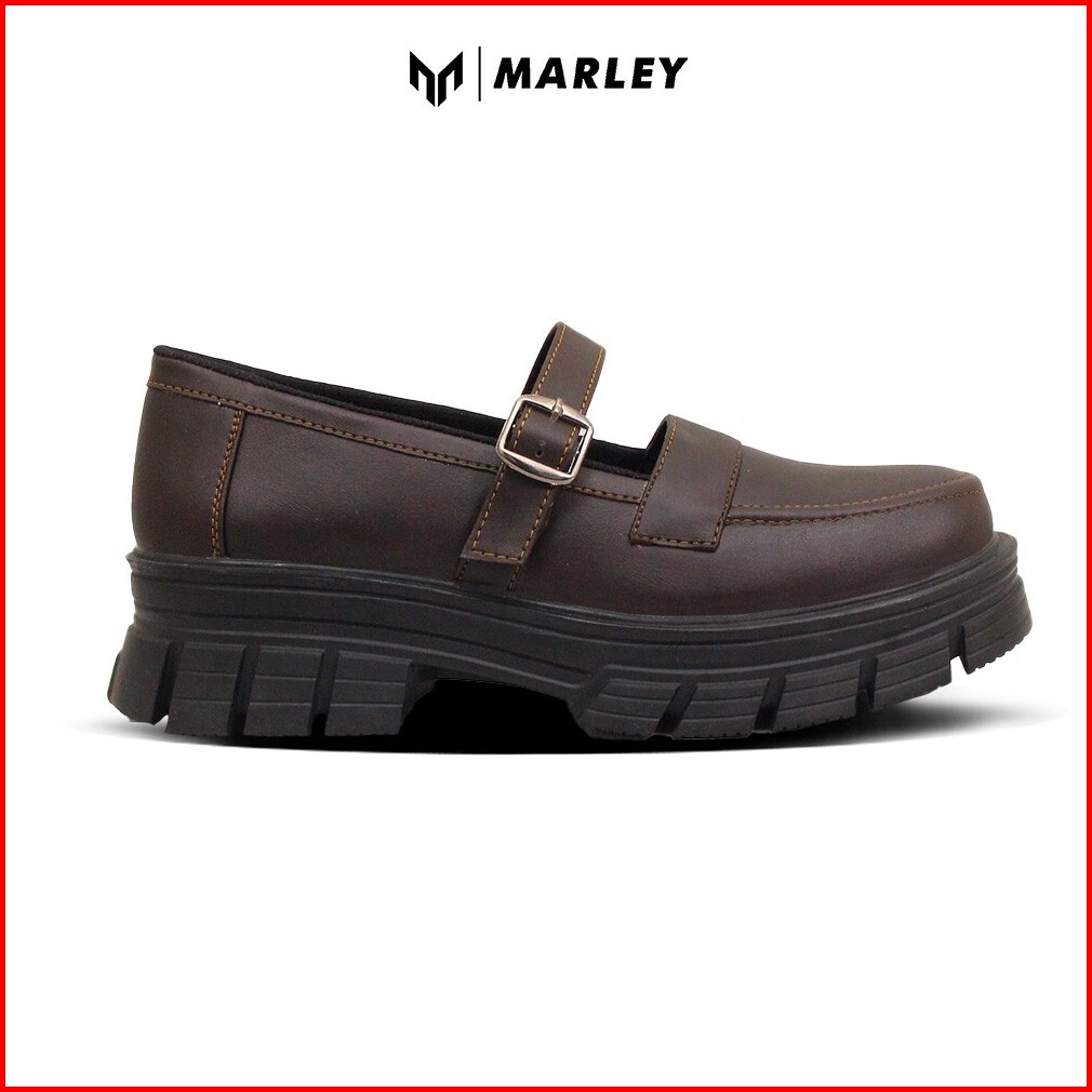 Marley Nayara 107-01 Sepatu Pantofel Docmart Wanita Sepatu Mary Jane Formal Kasual Sintetis Hitam