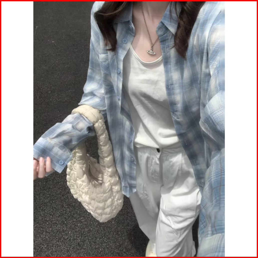 2toyoung Kemeja Tabir Surya Kotak-kotak Biru Musim Panas Wanita Gaya Baru Baju Atasan Wanita Terbaru Blouse Korean Style