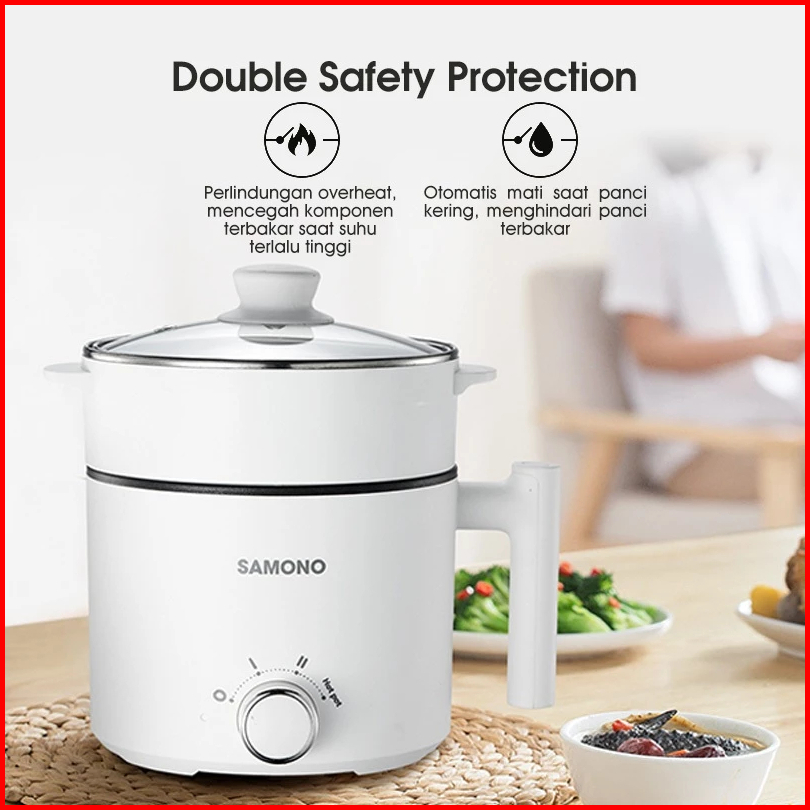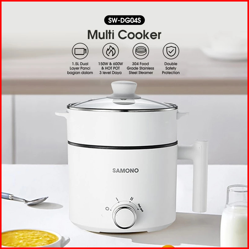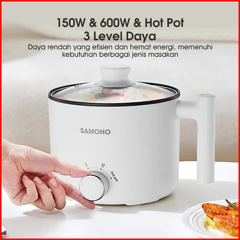 Samono Panci Listrik Hotpot Multi Cooker 1 5l Dengan Kukusan Tutup Kaca 150 Watt Sw-dg04s