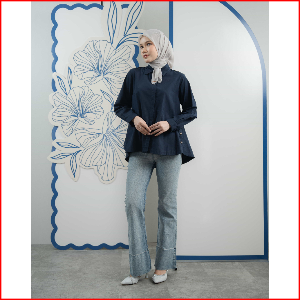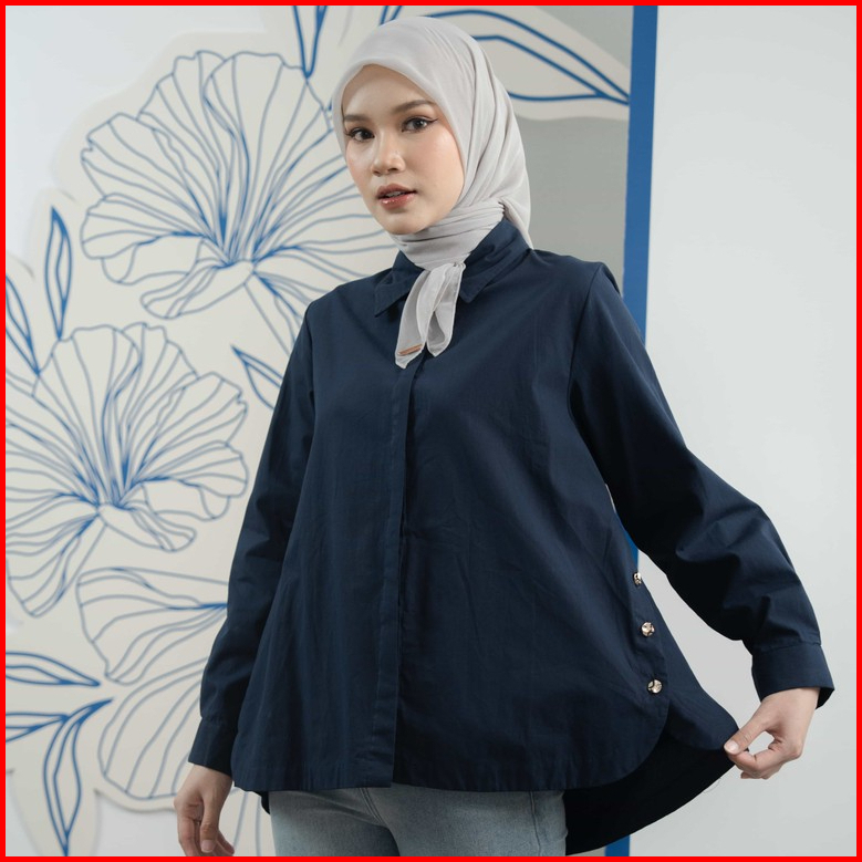 Mayoutfit Echo Shirt Atasan Kemeja Poplin Wanita Aksen Bukaan Kancing Sisi