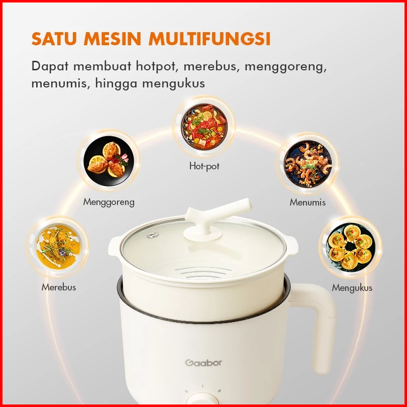 Gaabor Alat Panci Listrik Serbaguna Cooker Electric Anti Lengket Kapasitas 1.5l 600w Kukusan Steamer Gr-n15a