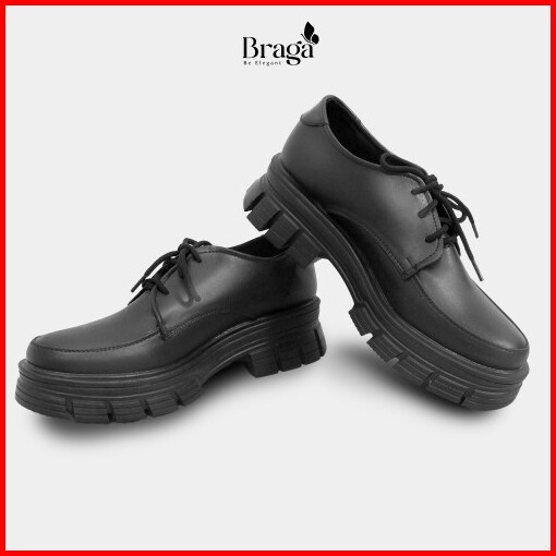 Braga X Wioz Hinata B 3901 Sepatu Slip On Docmart Wanita Formal Kerja Kantorcasual Kuliah Hangout Warna Hitam