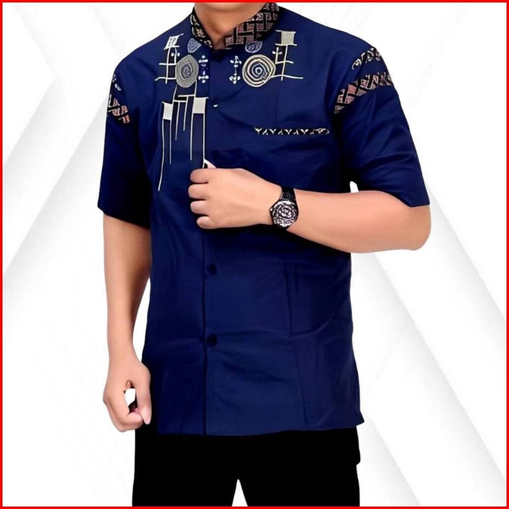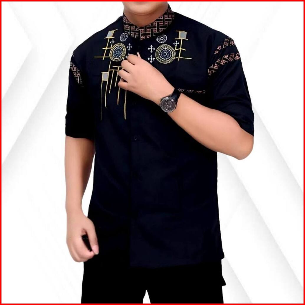 Kemeja Koko Lengan Pendek Pria Dewasa Motif Kombinasi Bordir Bahan Katun Premium
