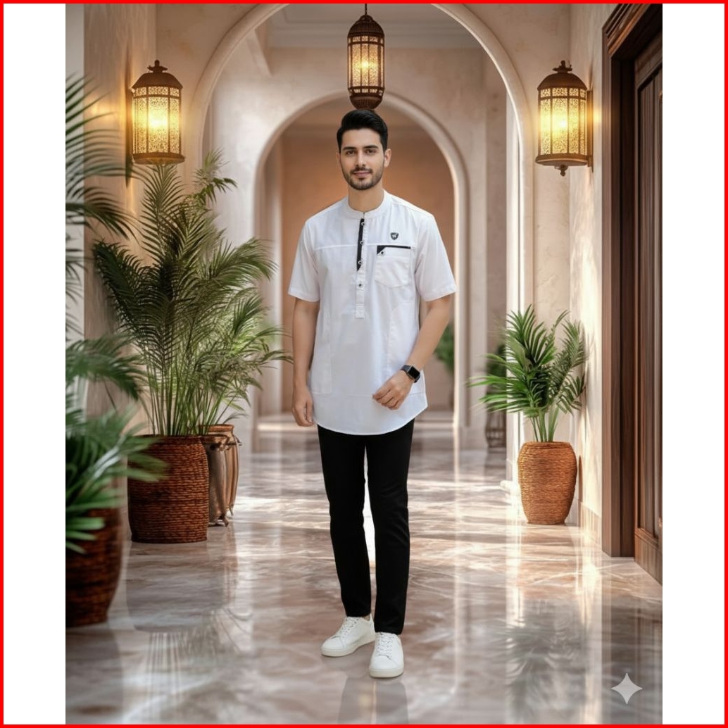 Koko Kurta Pria Lengan Pendek Kain Katun Halus Tidak Mudah Kusut Nyerap Keringat Tidak Terawang