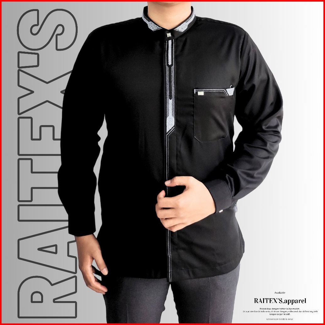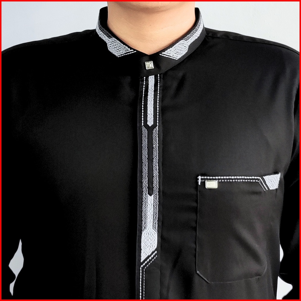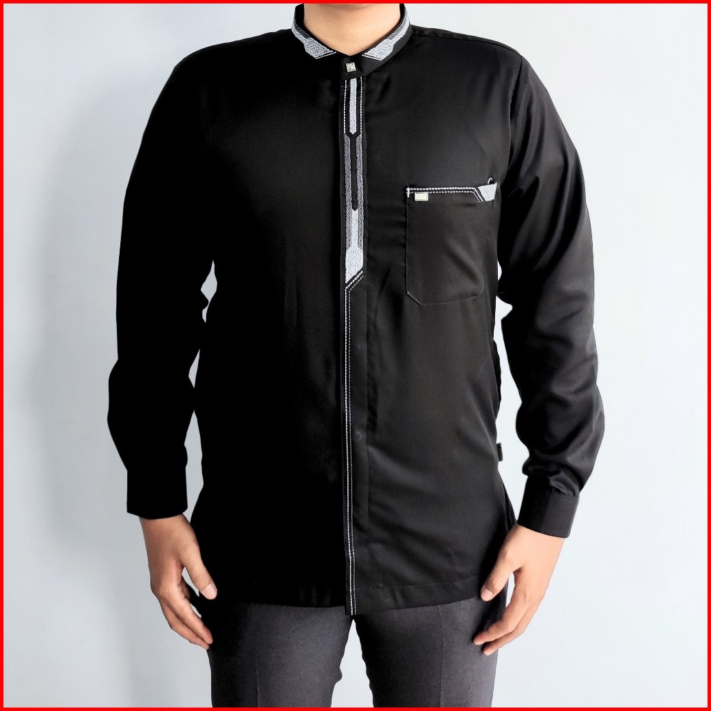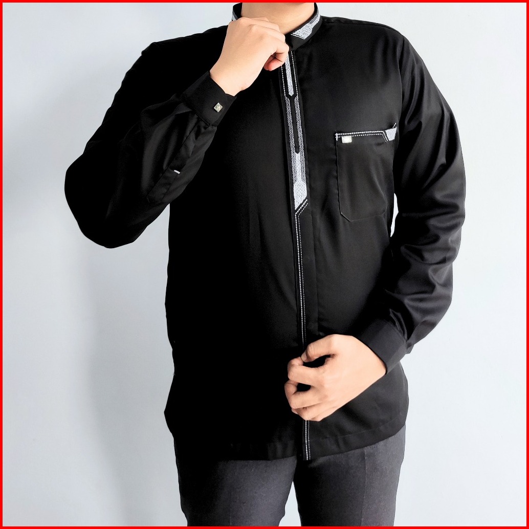 Baju Koko Lengan Panjang Manset Pria Dewasa Kemko Bordir Minimalis Simple Koko Taqwa Hitam