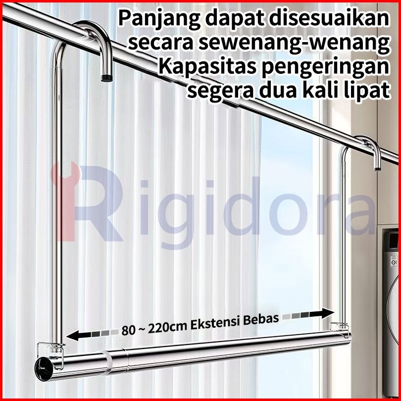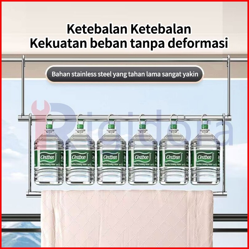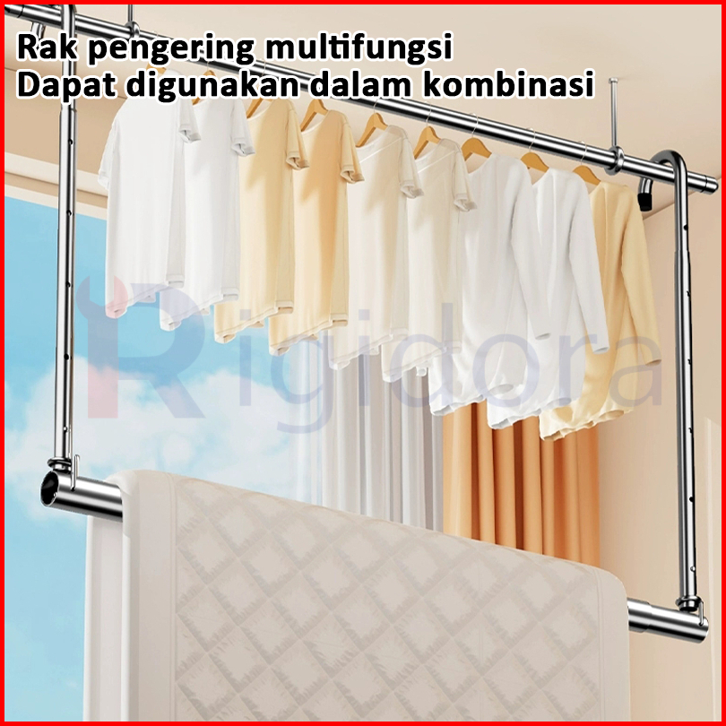 Rigidora Balkon Menggantung Rak Pengering Tiang Penjemuran Selimut Jemuran Portable Lipat Teleskopik-tinggi Disesuaikan