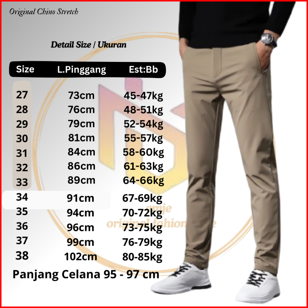 Celana Chino Panjang Pria Stretch Slimfit Chinos Pensil Jumbo Size 27-38