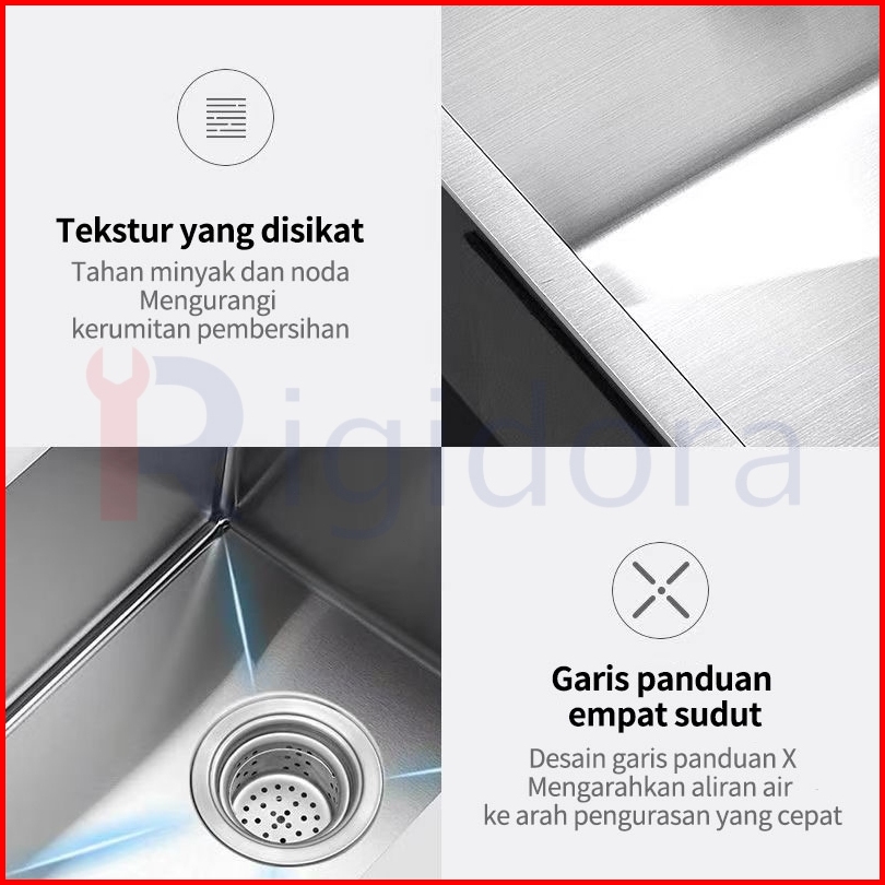 Rigidora Wastafel Kitchen Sink 1 Set Stainless Perak Anti-korosi Dan Pencegahan Karat