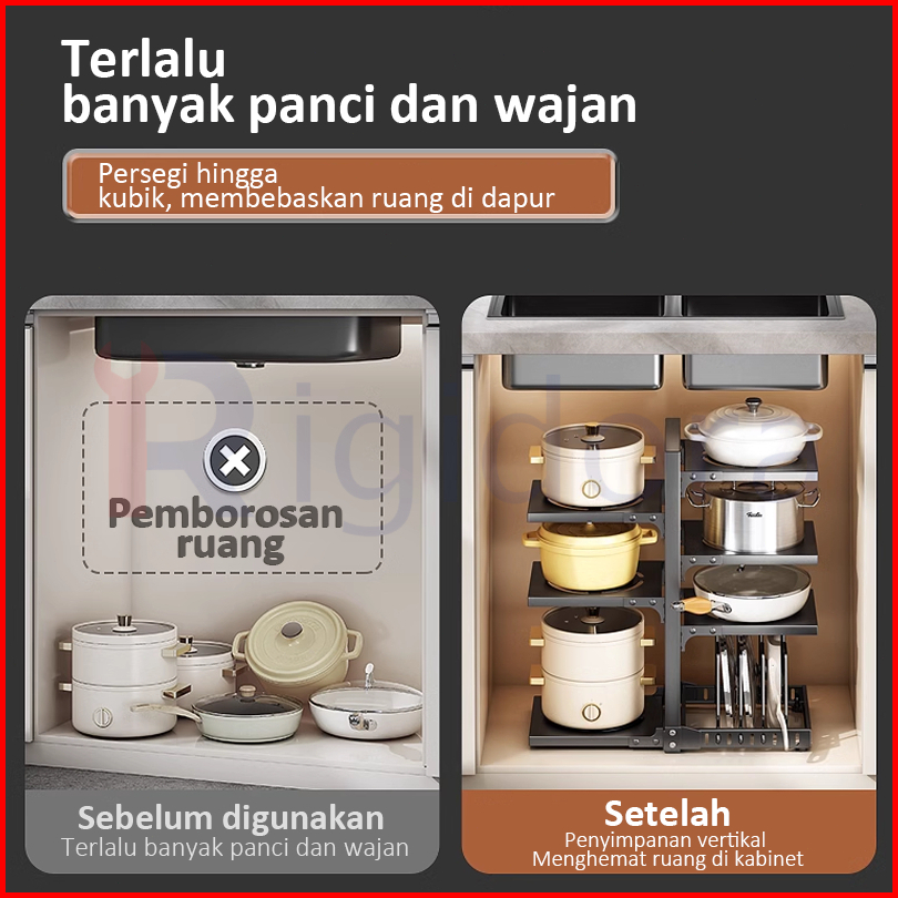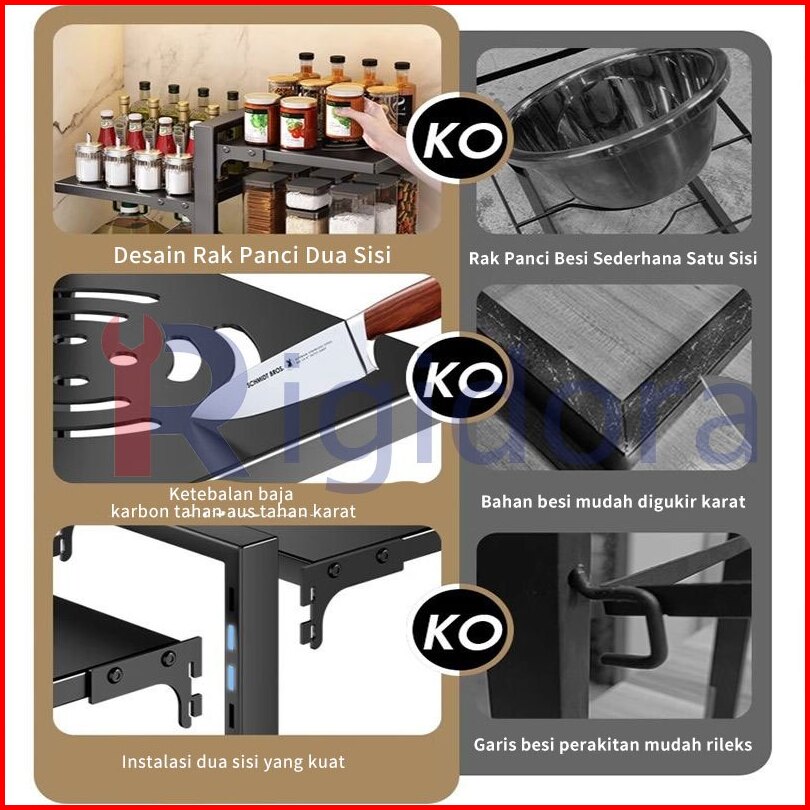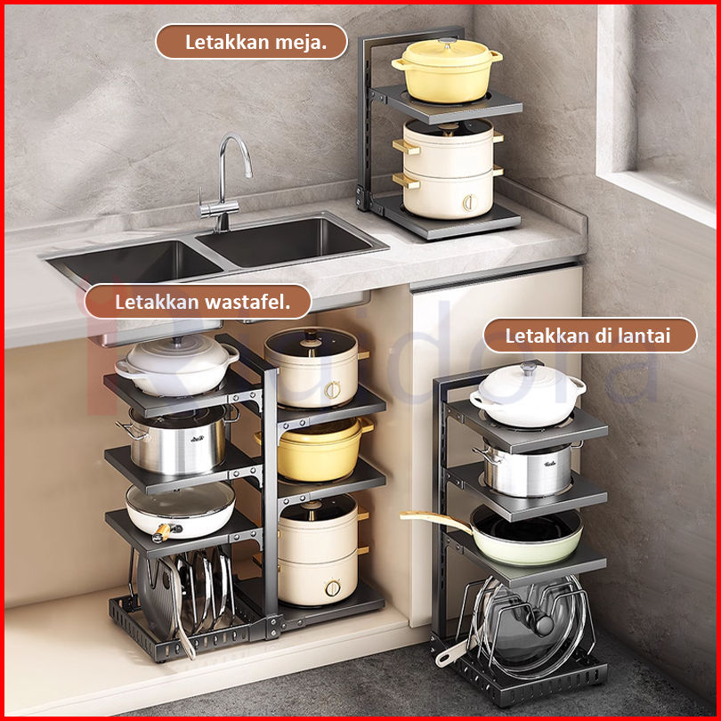 Rigidora Sus304 Rak Dapur Susun Rak Piring Rak Pot Rak Bawah Wastafel