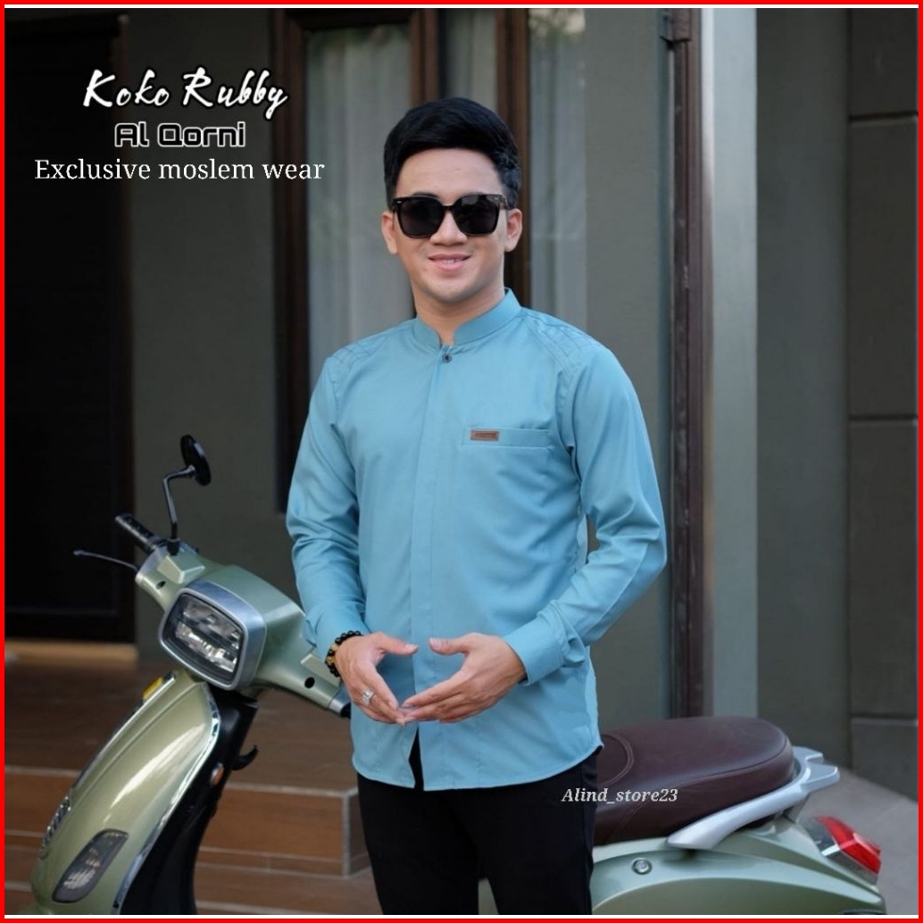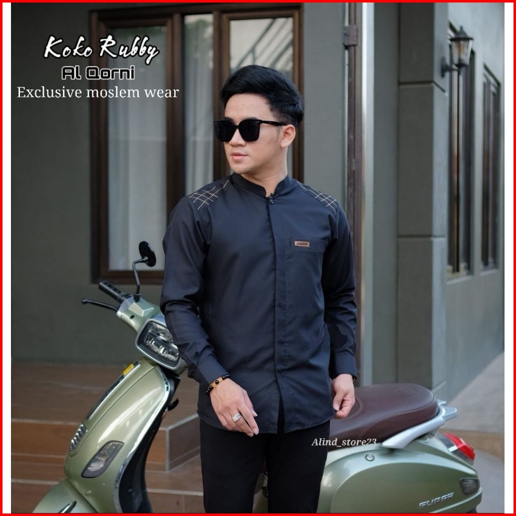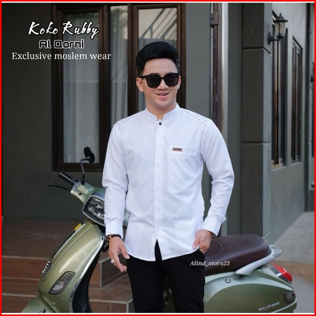 Baju Kemeja Koko Muslim Pria Dewasa Al-qorni Lengan Panjang Motif Simpel Model Rubyy Warna Putih