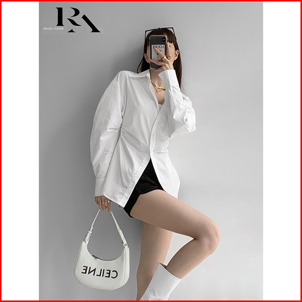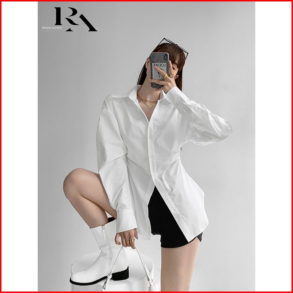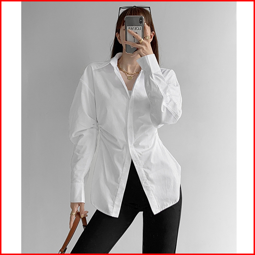 Riod Aoer Baju Atasan Wanita Terbaru Kemeja Warna Solid Lengan Panjang Berkerah Desain Siluet Pinggang Ramping Lipit Ata