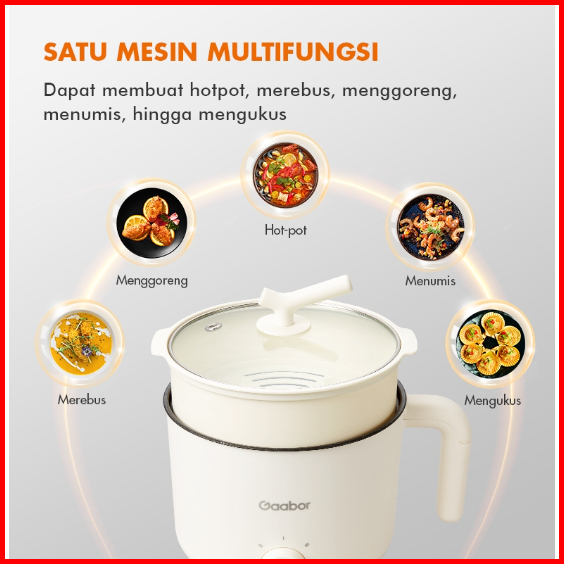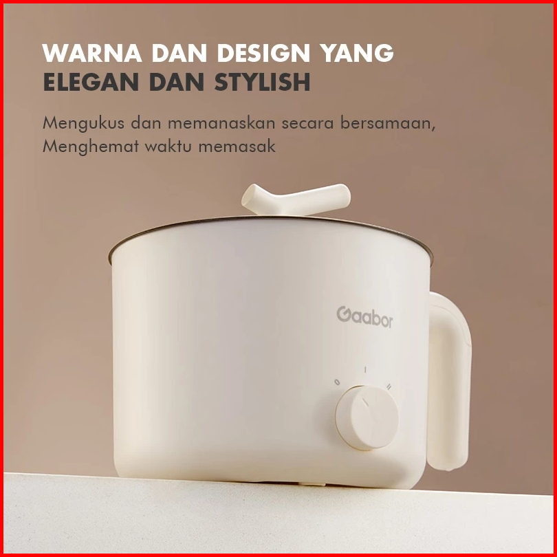 Gaabor Panci Listrik Serbaguna Electric Cooker Anti Lengket 1.5l Kukusan Steamer Gr-n15a