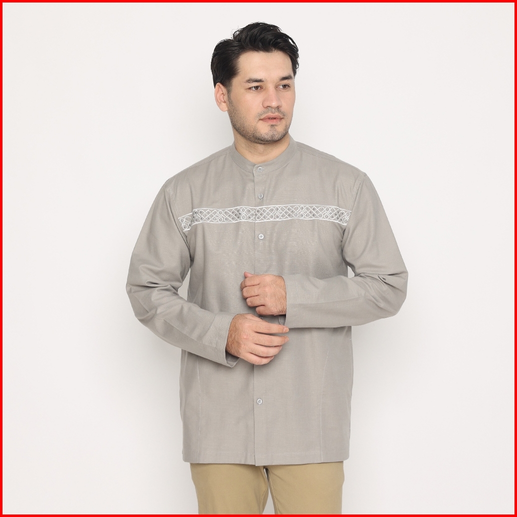 Amk Baju Koko Lengan Panjang Bordir Kk Faisal L S Grey