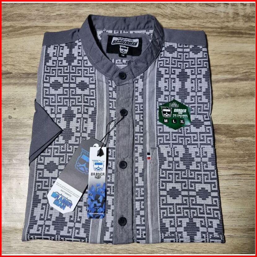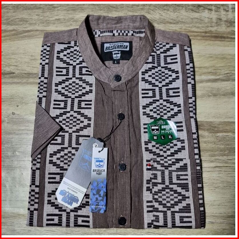 Braderman Original Baju Kemeja Koko Premium Kerah Shanghai Lengan Pendek Katun Madinah Motif Songket