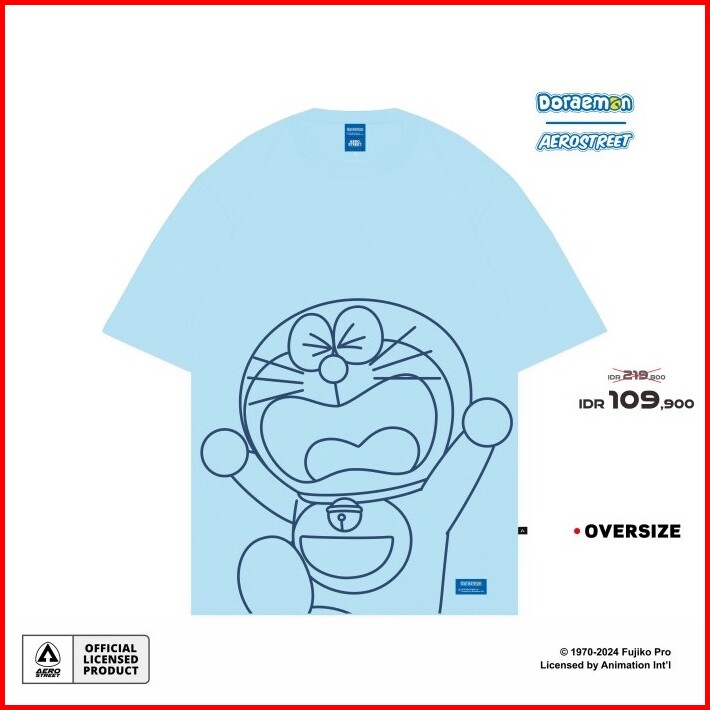 Aerostreet T Shirt Oversize Monoline Doraemon Baby Blue Kaos Fbdaa