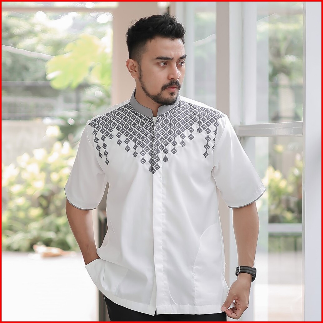 Baju Koko Pria Tangan Pendek Putih Katun Toyobo Ag06